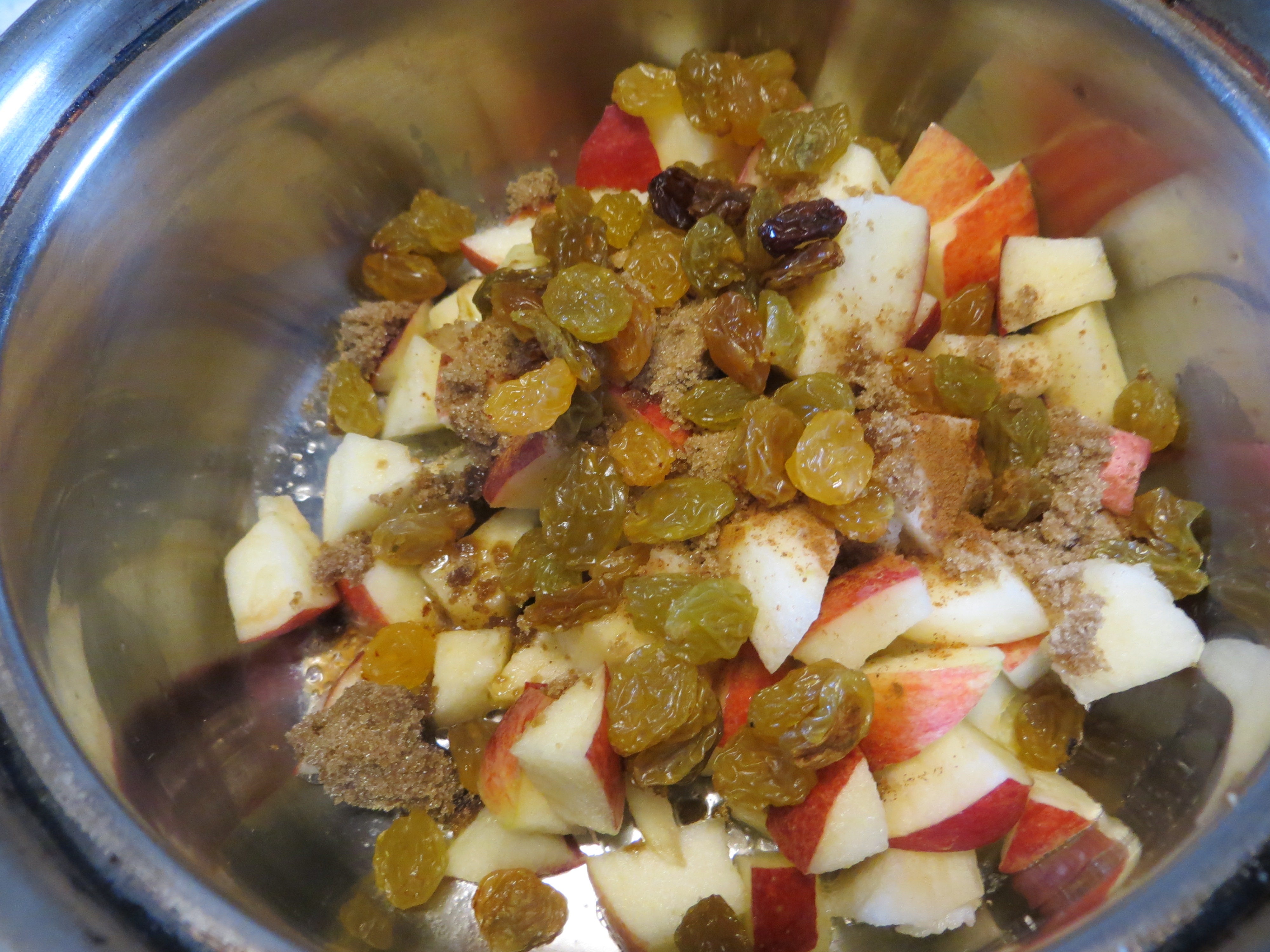 Saute apples in butter for 1-2 minutes. Add the rest of the ingredients and saute until apples are soft.