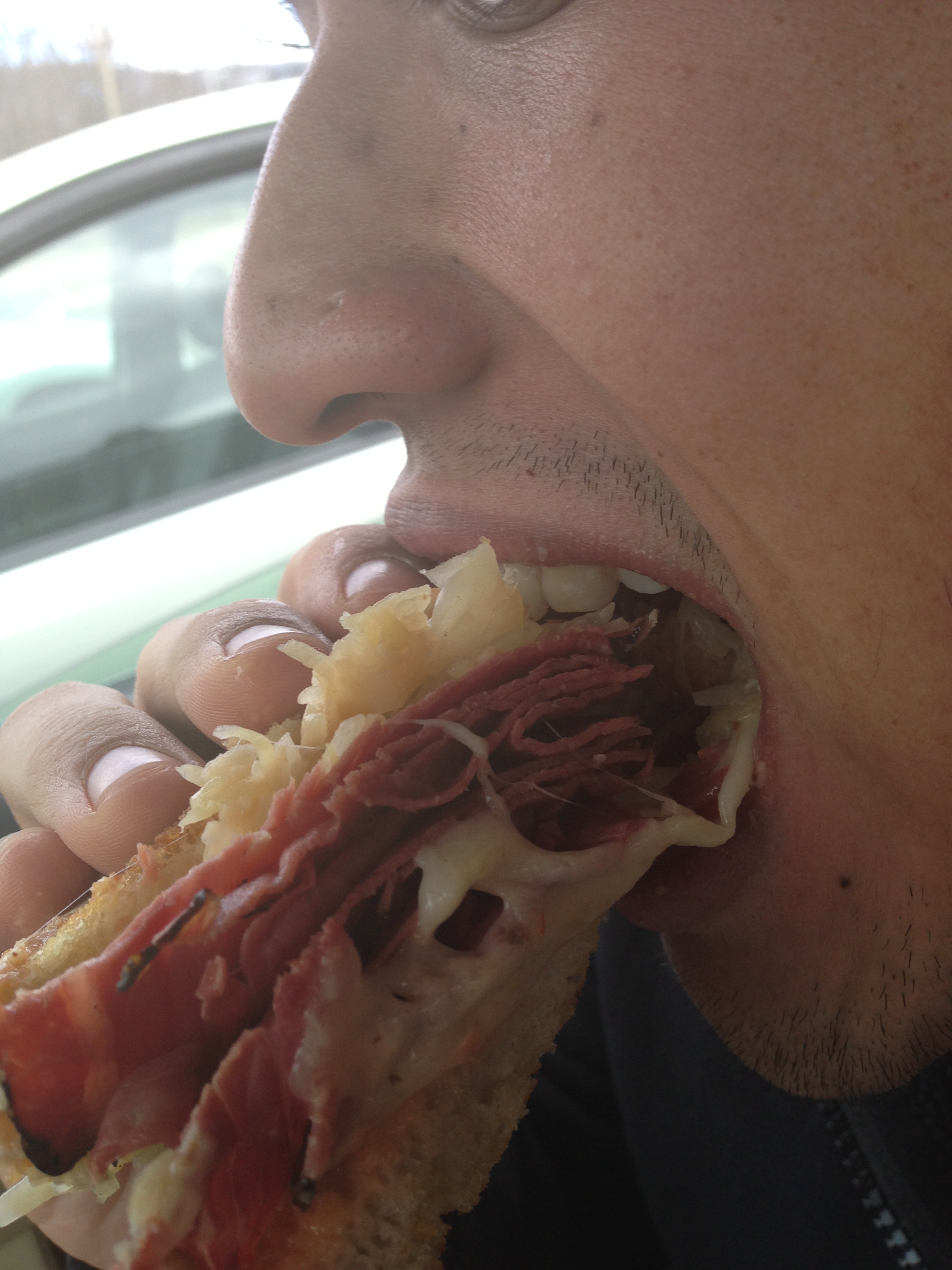 I drove up to my aunt’s house a few days before my boyfriend. When he arrived two days later, we only had twenty-four hours to get to know the ins and outs of Amherst, which most of the locals will tell you, is not difficult. It was his first experience taking Amtrak, and throughout the ride, he kept raving to me via text about the cool passengers he made friends with, the reasonably priced beers, the pretzels, the landscapes, etc. Although he had his fill of pretzels on the train plus a bagel that I brought him when I picked him up from the train station, he was still craving a meaty deli sandwich. (For the record, Massachusetts bagels are incomparable to NYC bagels.) We found ourselves at Atkins Farms, a local grocery and deli that sold local produce and specialty food products. The feeling of the place was quaint and friendly. Shaun ordered his favorite: a rueben with pastrami. I personally am not fond of ruebens (blame it on the sauerkraut), but this one was balanced out well by the buttery bread and Russian dressing.