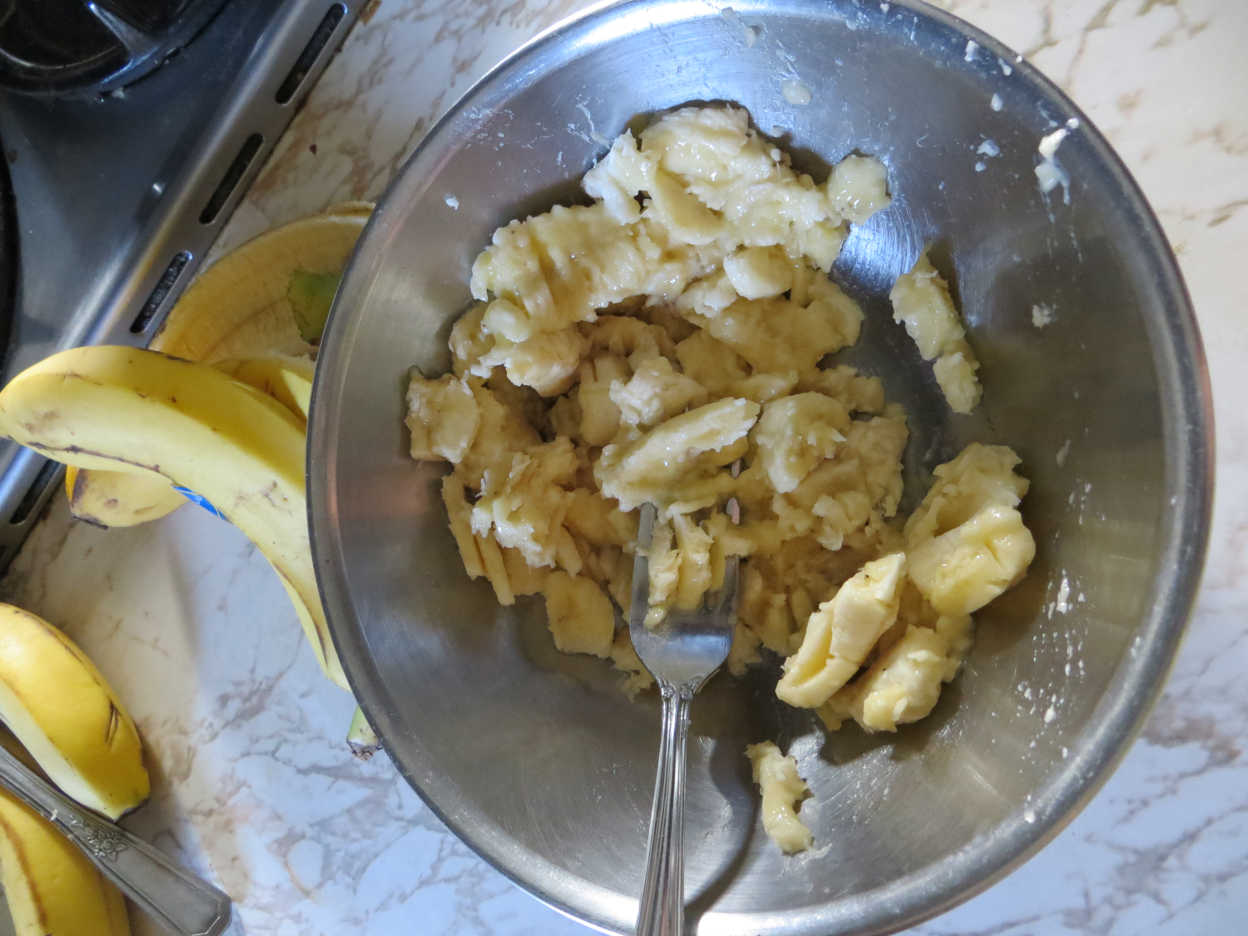 2. In a small bowl, mash 2 bananas with a fork, so they still have a bit of texture. Set aside.