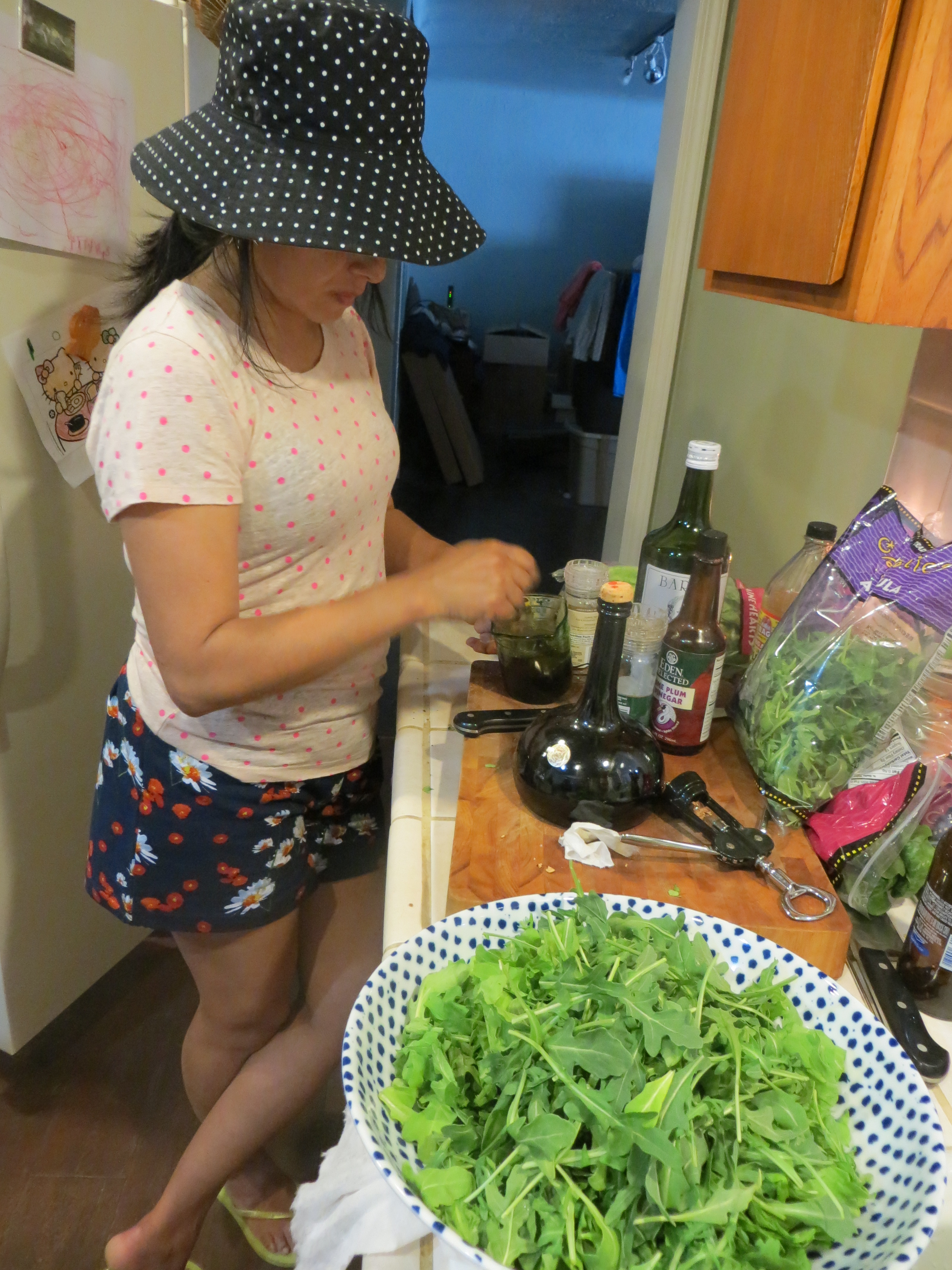 My sister-in-law was in charge of the salad and I on dessert. As you can see, I was reunited with all of my kitchenware and of course, my aprons from New Jersey.