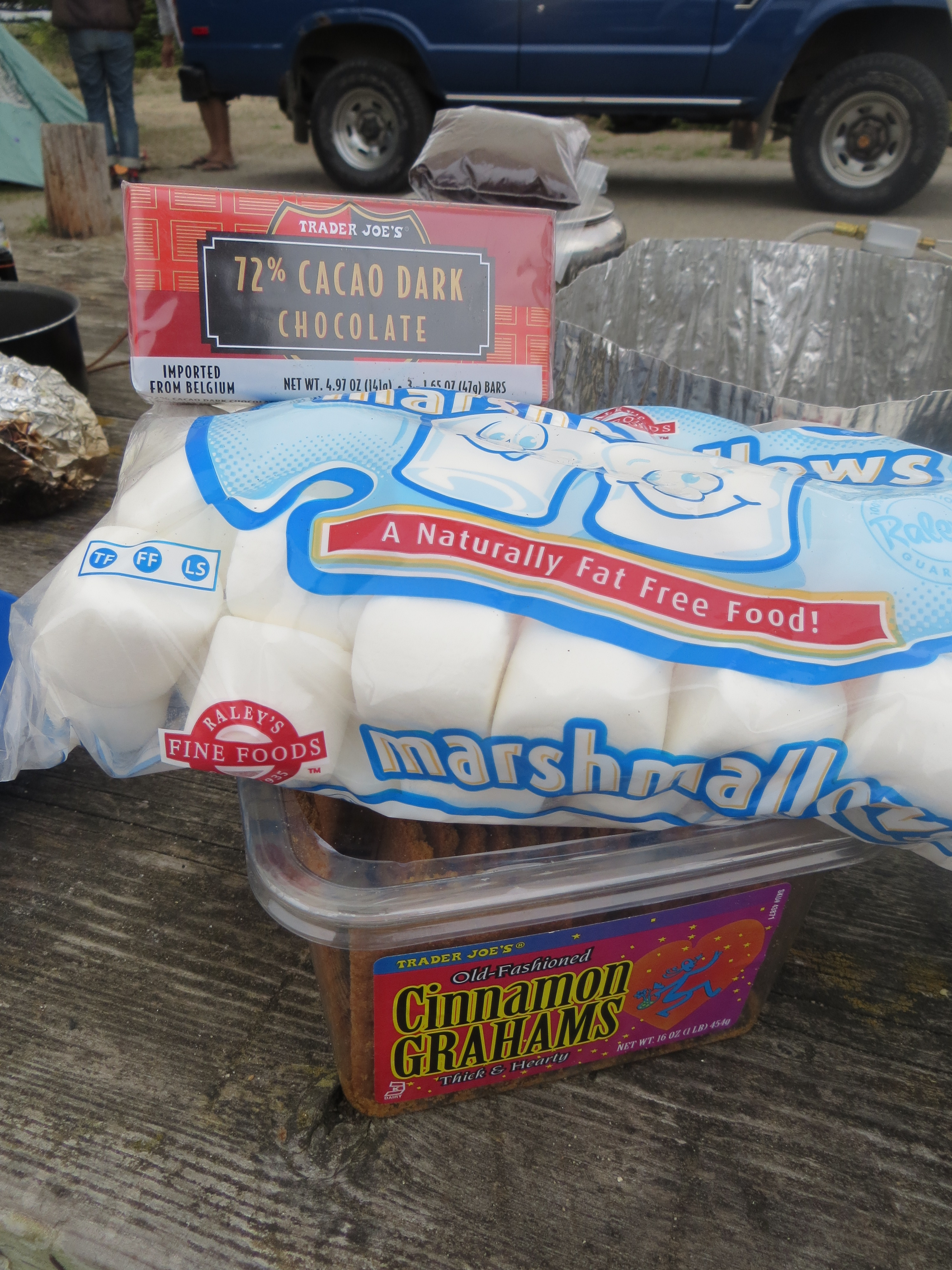 We enjoyed this hearty meal with corn on the cob and brown rice that my brother cooked over the stove, as well.  It was the best camping meal I have ever had!  For dessert, we had freshly brewed coffee, oatmeal raisin cookies that I had made the day before, and the grand finale… S’MORES: