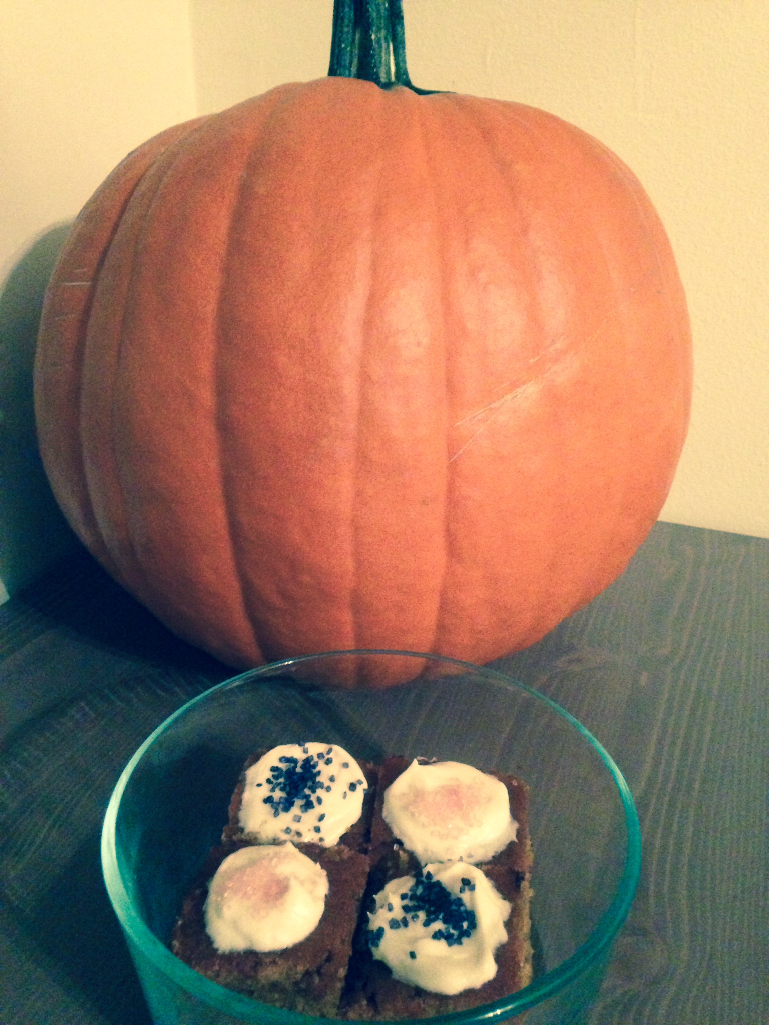 The autumn season means many things. It’s a time to dress warmer, rake leaves, go pumpkin picking, prepare for Halloween and the Holidays, carve pumpkins, and so on. Every year about a week before Halloween, I buy some canned pumpkin and cream cheese and prepare my first batch of homemade Pumpkin Squares for my family, loved ones, and co-workers. It’s been a tradition since 2008 when I came across the recipe as I was compiling ideas for my Thanksgiving contributions. Ever since, it’s been a hit and has come to be infamously associated with the Holiday season.
