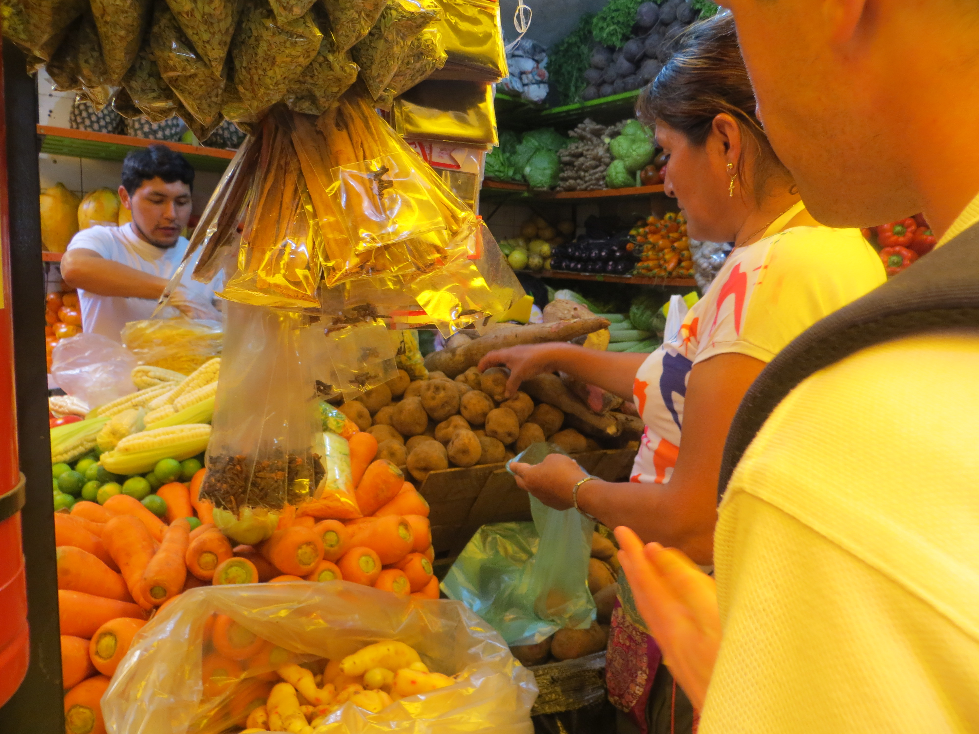 First, we walked to the Moderno Mercado, just two blocks away from our casa. This was an experience in itself for me. When I go grocery shopping, I usually take a 10 minute walk to the mall where they have a PlazaVea – a small-scale Target type of store. I had passed the Moderno Mercado a few times but have been too intimidated by the thought of having to haggle or struggle through my broken Spanish to buy ingredients that I need. Marisa led the way, and not surprisingly, the prices of the produce and packaged ingredients were significantly less expensive than that of PlazaVea.