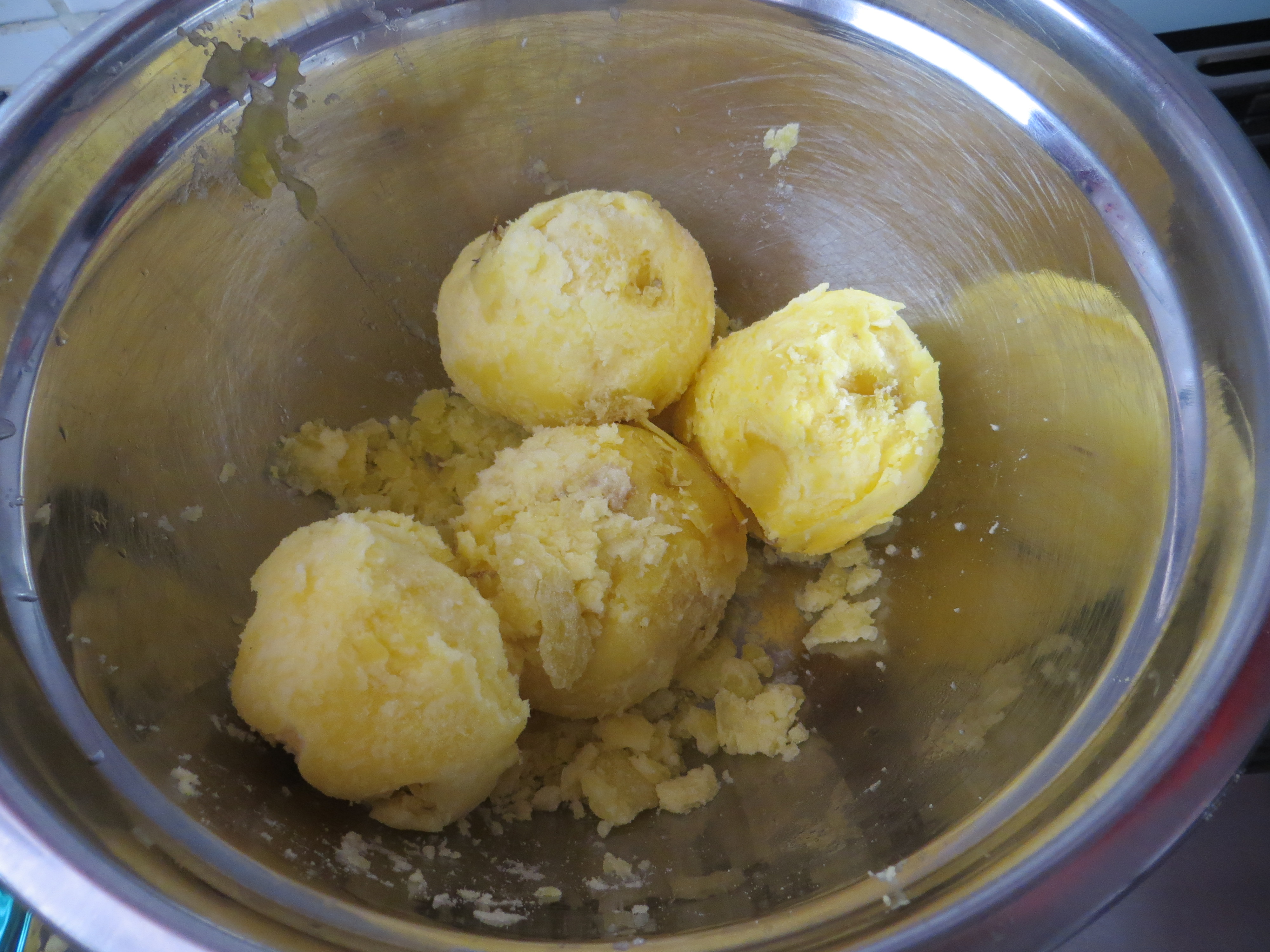 4.5 lbs yellow potatoes, washed & boiled with skin